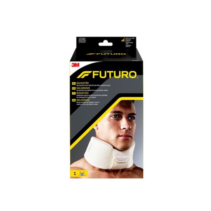 Futuro Halskrave er en nakkestøtte til bruk om dagen eller natten slik som foreskrevet av lege ved f.eks. klemte nerver eller stivhet i nakken eller støtte etter en nakkeslengskade. En nakkeskade kan i høy grad sette en stopper for aktivitetene dine. Halskragen fra Futuro gir deg støtten du trenger, slik at du kan ta livet ditt tilbake. Nakkekragen er justerbar i både omfang og høyde. En hakestropp justerer kragens høyde og gir økt komfort og tilpasning. Laget av pustende skum dekket med mykt strikket materiale som holder deg behagelig avkjølt. Halskragen er justerbar i omkrets mellom 27,9–50,8 cm og høyde mellom 6,35–12,7 cm.