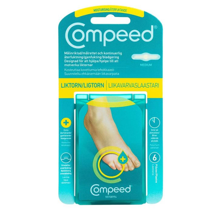 COMPEED®s hydrokolloidteknologi gir umiddelbar smertelindring på grunn av det dempende laget som raskt avtar for trykket som opprettholder liktornen. Hydrokolloidteknologien virker innenfra huden og ut ved å forbedre fuktigheten, slik at liktornen mykner og lettere kan fjernes. Holder seg på plass i flere dager, slik at man forhindrer smertefull gnisning.
