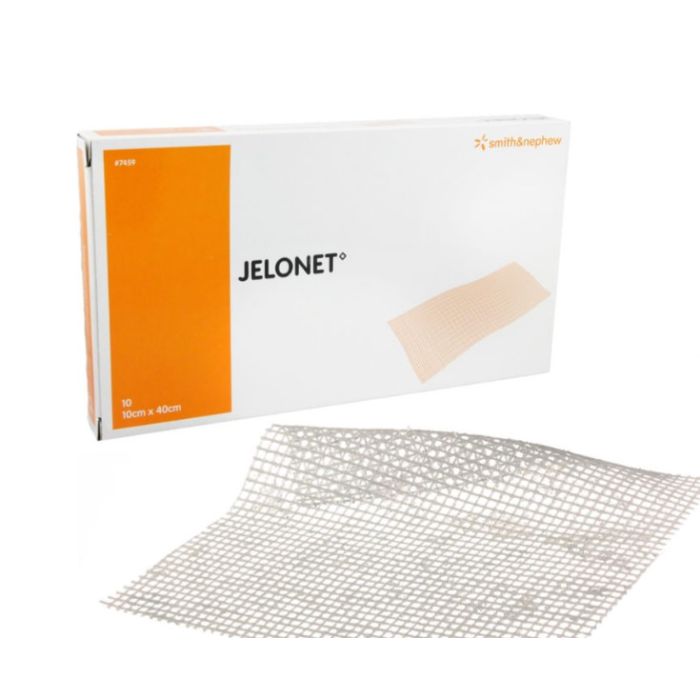 Jelonet 5x5cm vaselinkompress er en vevet bomullskompress laget med lukkede masker og innsatt med medisinsk vaselin (hvit). De lukkede maskene hindrer at bandasjen rakner og etterlater løse tråder i såret. Jelonet kan klippes til ønsket størrelse. Den åpne strukturen lar sårvæsken passere uhindret ut til overliggende absorberende bandasje. Den tilsatte vaselinen sørger for at overliggende bandasjer ikke hefter i såret. Jelonet beskytter sårflaten og virker smertedempende. Sterile kompresser.
