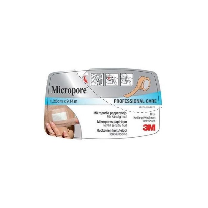 Micropore tape m/dispenser 1,25cmx9,14m brun